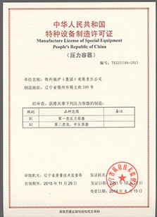 集團(tuán)公司具有A級鍋爐制造許可證;D級壓力容器制造許可證;1級鍋爐安裝、改造維修許可證;壓力管道安裝許可證;50t級起重機安裝許可證。錦州鍋爐有限責(zé)任公司、錦州冠達(dá)鍋爐容器制造安裝…